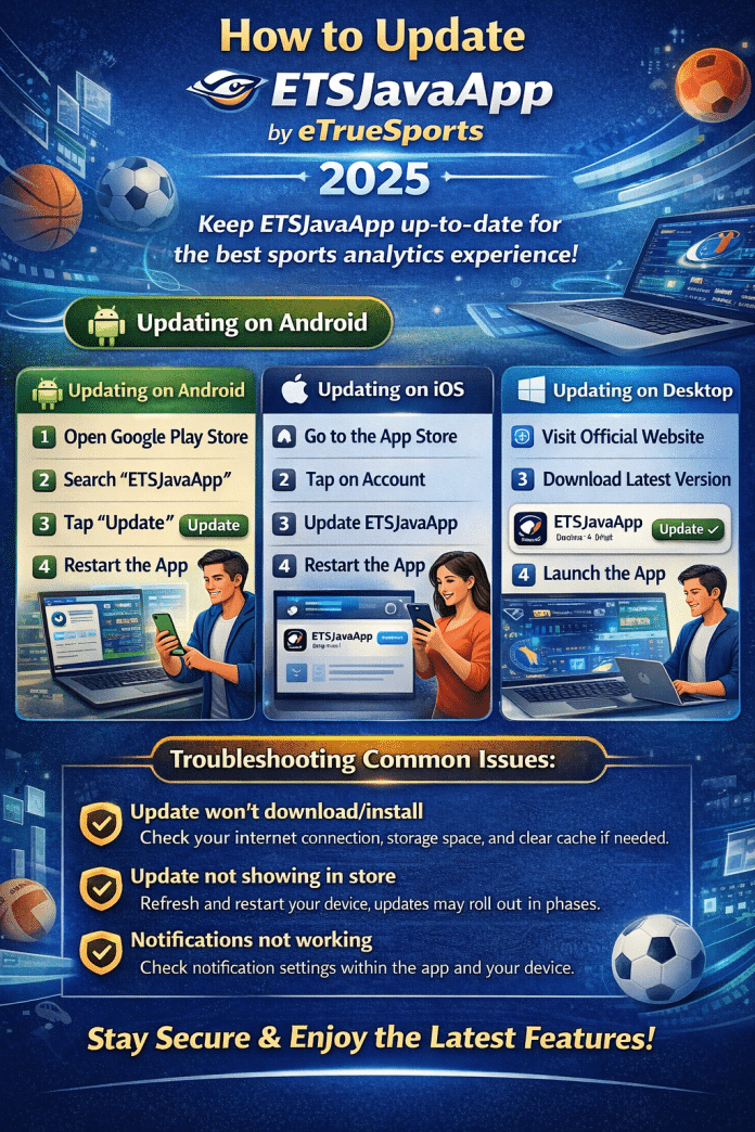 Updating ETSJavaApp by eTrueSports is a quick and simple process that pays off in performance, security, and functionality. By following the steps outlined for your Android, iOS, or desktop device, you can ensure you are always getting the most out of this powerful sports platform. Make it a habit to check for updates regularly, or simply enable automatic updates, and enjoy a seamless, feature-rich sports experience .