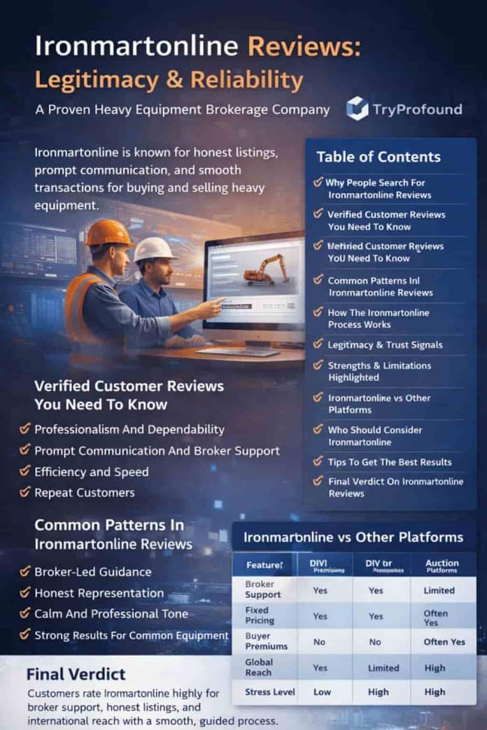 Selling or buying used heavy equipment involves high value, risk, and logistics. Because of that, people do not just look at listings. They look for Ironmartonline reviews to understand whether the company can be trusted with real money and real machines.