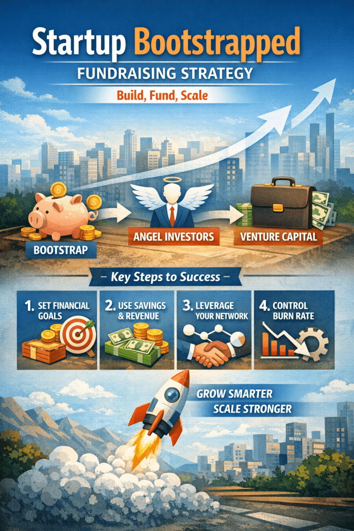A bootstrapped fundraising strategy focuses on building and growing your startup without depending on external investors in the beginning. Instead of seeking venture capital immediately, founders use personal savings, early customer revenue, or small loans to fund operations.