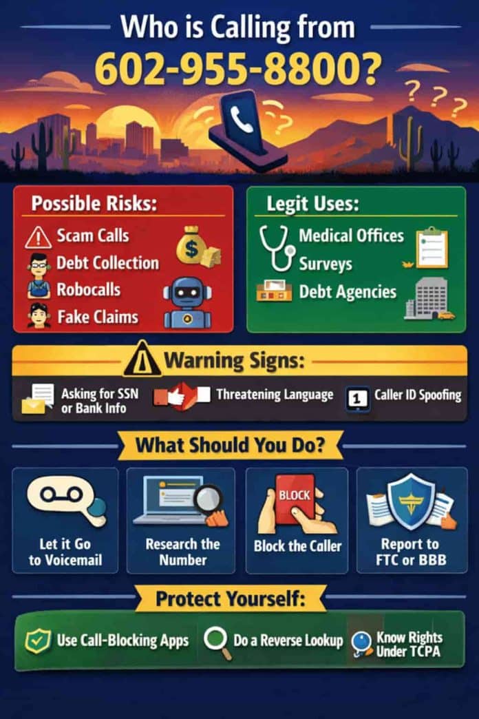 The number 602-955-8800 is linked to the 602 area code, which serves Phoenix, Arizona. Like many similar numbers, it’s often reported for frequent, sometimes suspicious calls. It has shown up on various call-reporting platforms, raising concerns about its origin and intent.