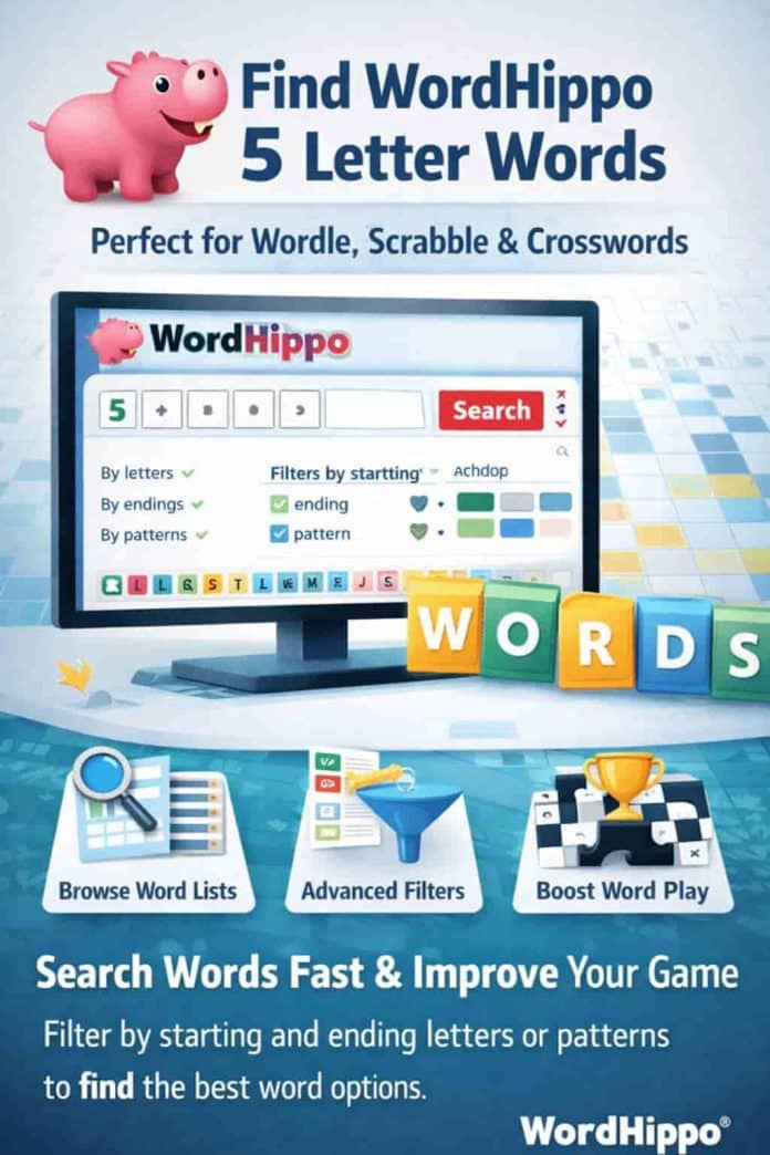 Unlike clunky word lists, WordHippo 5 Letter Words tools are intuitive and responsive on desktop and mobile.